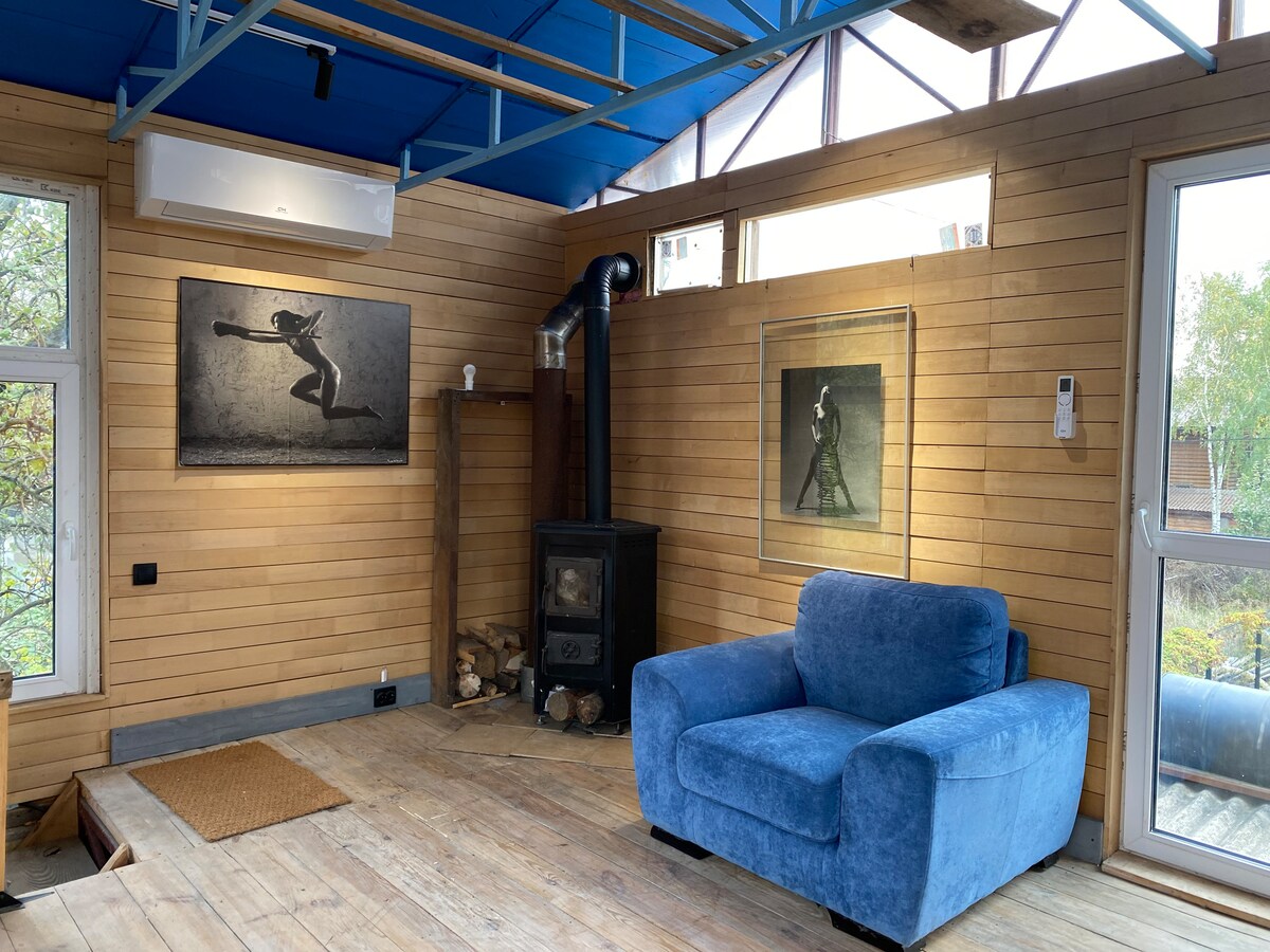 Soba na 2. spratu sa odvojenim kupatilom i balkonom u dizajnerskoj porodičnoj kući - muzeju! Jedna je od najjedinstvenijih kuća! Tu je i studio u dnevnoj sobi, kuhinja sa svim neophodnim aparatima i posuđem, terasa. Zemljište od 18 hektara na kojima ćete pronaći letnju spavaću sobu, roštilj, pozornicu, bazen sa okvirom, visećim ležaljkama, teniskim stolom, košarkaškim prstenom, barom, barovima, simulatorom i kućnim mini-zoom (pas, mačke, papagajem). U blizini se nalazi šuma, jezero sa peščanom plažom u šumi. VIASAT TV, Wi-Fi.