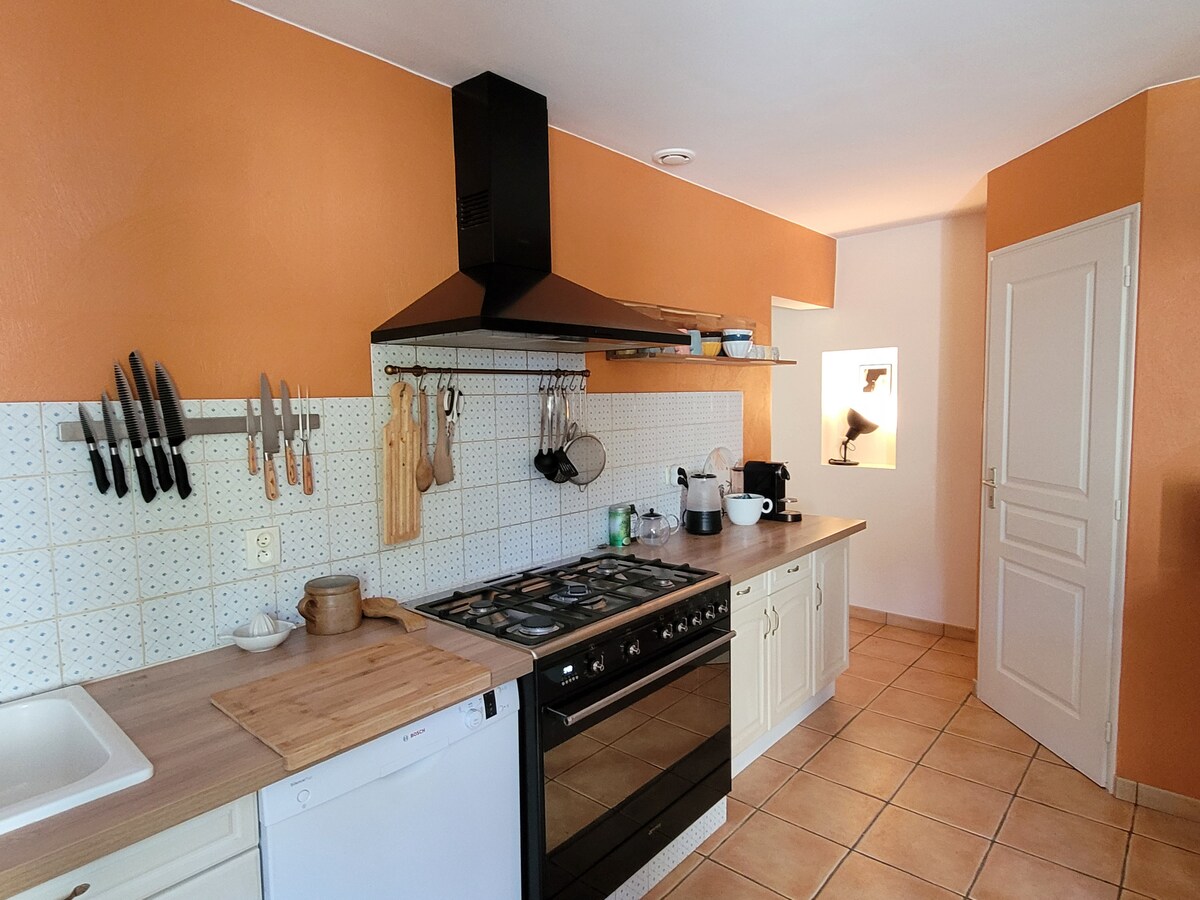 Bilo da dolazite vozom, autobusom, automobilom... čeka vas utočište mira! Kuća u selu Sent Mari sa baštom, 100 m od prodavnica, 300 m od plaža, Veoma svetlo, podno grejanje i dekorativna peć na drva. Kvalitetna posteljina na mezaninu. Na raspolaganju su vam dva bicikla. Obezbedite prostor za svoje bicikle. Šarmantna bašta, bez pogleda, viseća ležaljka, ležaljke za sunčanje, terasa i balkon za ručak. Naknada za čišćenje nije uključena, mogućnost rezervacije u objektu.