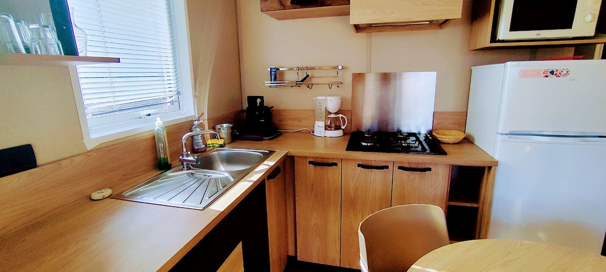 Ovo nezaboravno mjesto je sve samo ne uobičajeno. Topla sa svim udobnostima, planinska kuća Mimosa na obalama Drôme-a od 35 m² nudi vam vrhunsku uslugu sa prekrasnim panoramskim pogledom na rijeku Drôme i planine Diois. Vrlo svetao životni prostor sa prozorom sa pogledom na terasu koja gleda na reku, potpuno opremljenu i veoma funkcionalnu integrisanu kuhinju sa svime što vam je potrebno za pravljenje dobrih malih jela.