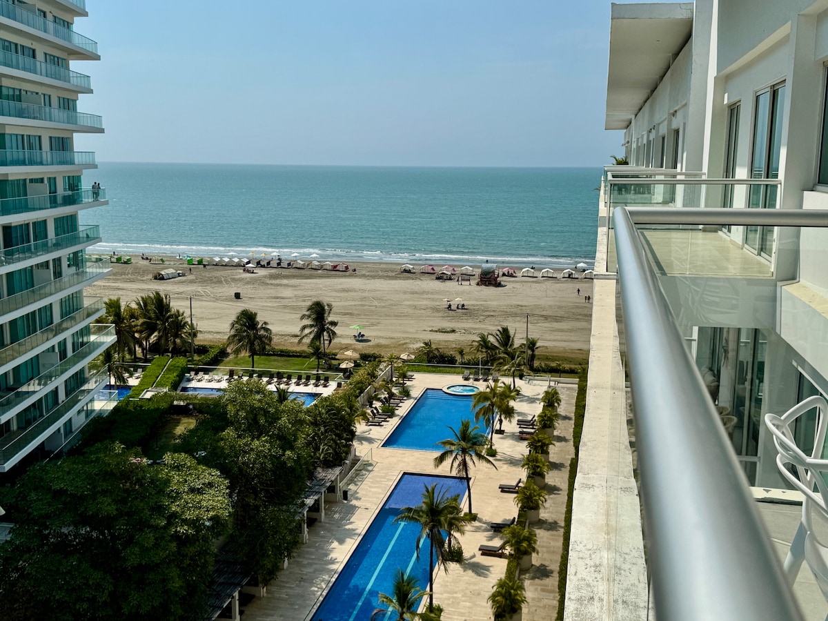 MORROS EPIC 7th floor beachfront - La Boquilla, Cartagena's only Blue Flag beach. Caribbean ocean view, 6 pools, gym, direct beach access, stunning sunsets. Exclusive hotel zone. 20 min to historic center, 8 min to Las Ramblas Mall. Ideal for families, couples, remote work. 500Mbps WiFi, fully equipped kitchen, A/C, washer/dryer. Quiet, away from Bocagrande crowds. 24/7 security, free parking. Direct owners - best price. RNT 200192.