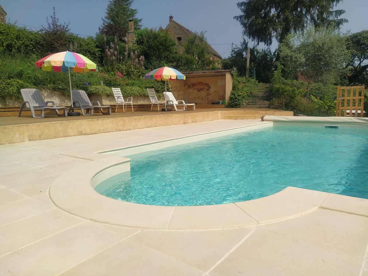 Predlažem vam ovu prelepu klimatizovanu samostojeću kuću za 5 osoba u zelenom i mirnom 10 km od pećina Laskau i 15 km od Sarlata. Cocooning atmosfera za ovaj dom sa 3 spavaće sobe sa dnevnom sobom, dnevnom sobom, kupatilom sa WC-om, kuhinjom opremljenom rernom, mikrotalasnom rernom, mašinom za pranje sudova, frižiderom, mašinom za pranje veša) Privatni bazen bez grejanja sa spoljašnjom kuhinjom opremljenom gasom, roštiljem na ugalj sa vodom i natkrivenom terasom.