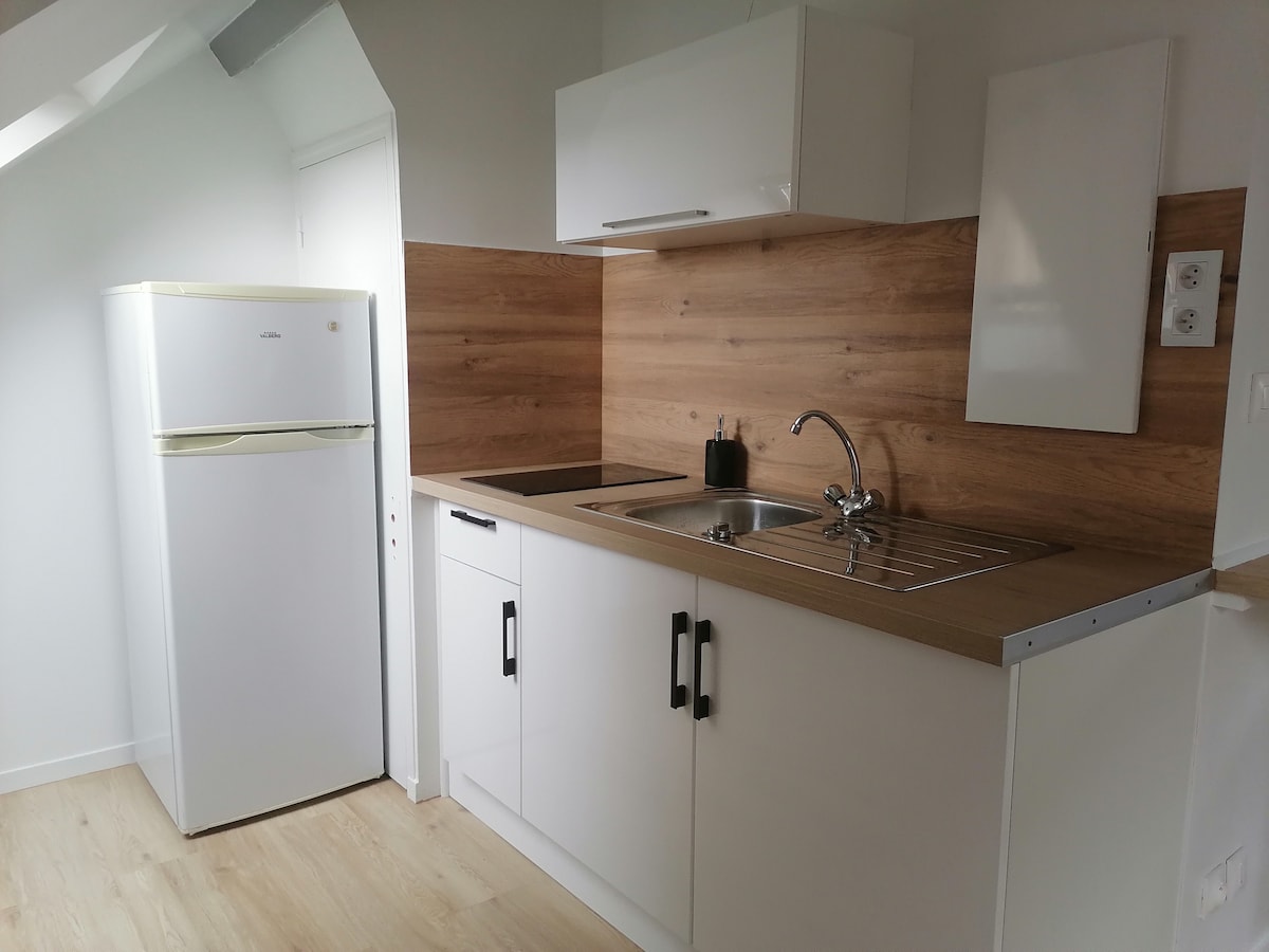 Appartement au pied du tram, proche hôpital et université. 35 à 40 minutes du circuit des 24h. Charmant studio sous comble, entièrement meublé. Cuisine toute équipée : frigidaire (freezer inclus), plaques de cuisson, micro ondes, vaisselle, cafetière électrique, bouilloire, grille pain, nécessaire de ménage, aspirateur. Canapé, télévision, lit 2 personnes (linge de lit inclus). Salle de bain avec baignoire, machine à laver. Table et fer à repasser, séchoir à linge