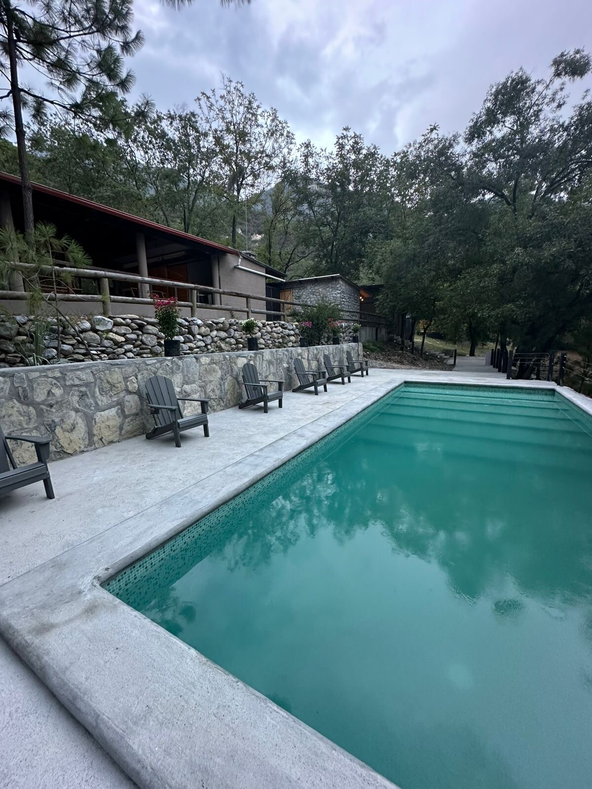 Estilo industrial (climatizada)para disfrutar en familiar y amigos. vista espectacular a las montañas, amplia terraza y bellísima alberca. Max 6 huéspedes, no invitados, niños pequeños y bebés cuentan como extras.. ideal para GEATTING READY asador, portón eléctrico, bardeada, malla electrificada, subes tu vehículo a la altura de la terraza y así el acceso a discapacitados. Máx 2 mascotas a 2 km de la carretera y 400 mts de terracería, a 8 min de pueblo mágico Santiago. Solo música ambiental