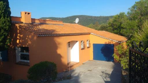 Villa conviviale dans un écrin de verdure , vacances au calme. Au Rez de chaussée, un salon de jardin , un espace déjeuner abrité du soleil avec vue sur la mer et les collines. salon avec cheminée, cuisine, une chambre et sa salle de douche.A l étage, deux chambres et une salle de bains, un séjour lecture en mezzanine avec deux lits d appoint. La piscine 10x5 peut-être chauffée à partir de mai et jusque mi octobre. Climatisation, wifi fibre. Possibilité de garer la voiture sur la propriété