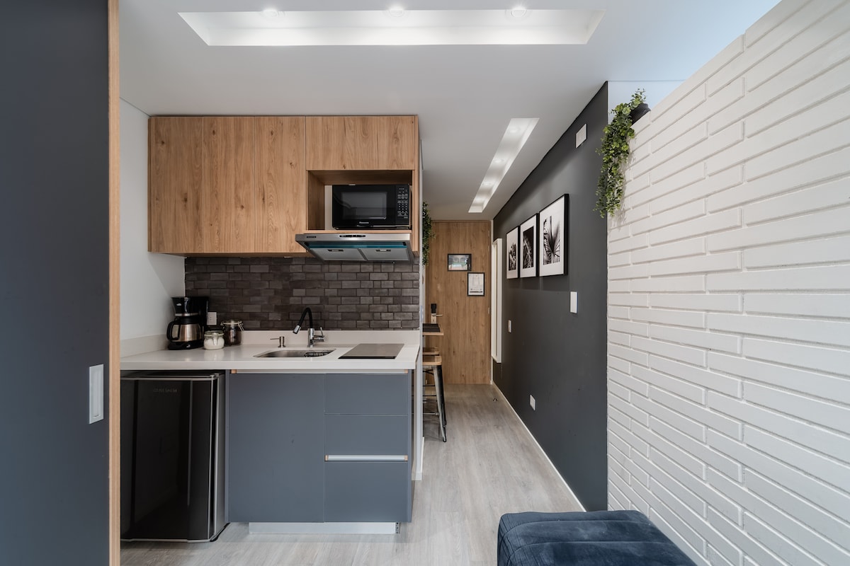 Spektakularan moderan stan prepoznatljivog dizajna koji ga čini jedinstvenim u ovom području. Svaka jedinica ima udoban balkon. Uživajte u spektakularnoj zajedničkoj terasi s kaminom, roštiljem i coworking prostorom za potpuni doživljaj. U blizini ćete pronaći prodavnice, univerzitete, javni prevoz, restorane, Movistar arenu i stadion. Doživite savršenu fuziju udobnosti i praktičnosti u našem domu. NAŽALOST, NEMAMO PARKING.