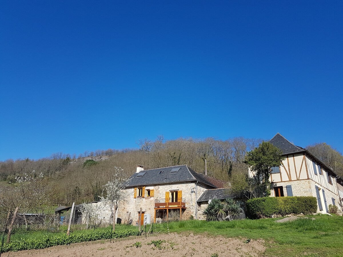 Come for Autumn Winter 2025/6 with a 30% reduction!! (Already applied) A charming farmhouse set in 10 hectares of land, in an enviable position with exceptional views. To be enjoyed at any time of year. Search for orchids in Spring; laze by the (shared) infinity pool in Summer; enjoy roast meats and chestnuts in the fireplace in Autumn or cozy up next to the Christmas tree with family in Winter. Saint Robert, one of ‘Les Plus Beaux Villages des France’, is only a few mins away or 20 min walk.