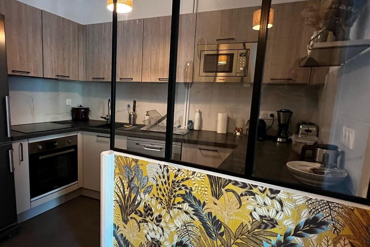 Novouređeni stan od 30 m², pored naše kuće, idealan za 2 osobe. Uključuje: spavaću sobu sa krevetom od 140 cm, kupatilo sa italijanskim tušem, dnevni boravak/trpezariju sa Wi-Fi mrežom, TV, potpuno opremljenu kuhinju. Pristup našoj bašti/terasi, roštilju, ležaljci. Čišćenje i posteljina su uključeni. Parking na ulici (uz naknadu). Tramvaj T2, voz, La Défense, Vélib u blizini. Ovaj smještaj nije pogodan za osobe s invaliditetom.