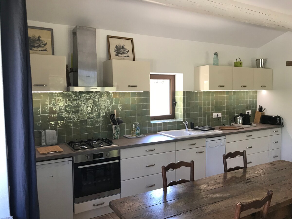 Vercors Sud, između planina i Drôme Provençale, uranjanje u srce prirode u izolovanu lokaciju. Posljednjih 2 km neasfaltirani put. Topla i udobna kuća, nalazi se na visini od 500 m, 150m od kuće vlasnika, koja se sastoji od 1 sobe sa bračnim krevetom, druge sa bračnim krevetom i 2 kreveta za jednu osobu, opremljene kuhinje sa šporetom na drva, dnevne sobe sa kaminom i 1 kupatila. Mnoge aktivnosti u blizini: planinarenje, planinarenje, penjanje, plivanje u reci, klisure Omblze, Gervanne, Drôme, Roanne...