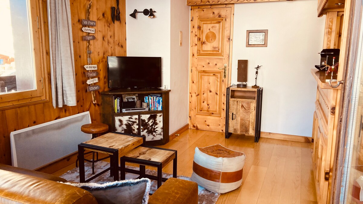 Au coeur de Val d'Isère pour des vacances en famille exceptionnelles!!! Tout se passe ici... . Chaleureux, confortable et calme l'appartement est équipé pour que votre séjour soit parfait. Depuis le balcon la vue est magnifique sur la Face de Bellevarde et Solaise. Nous vous accueillons à l'appartement.... Mon logement est parfait pour les couples et les familles (avec enfants).