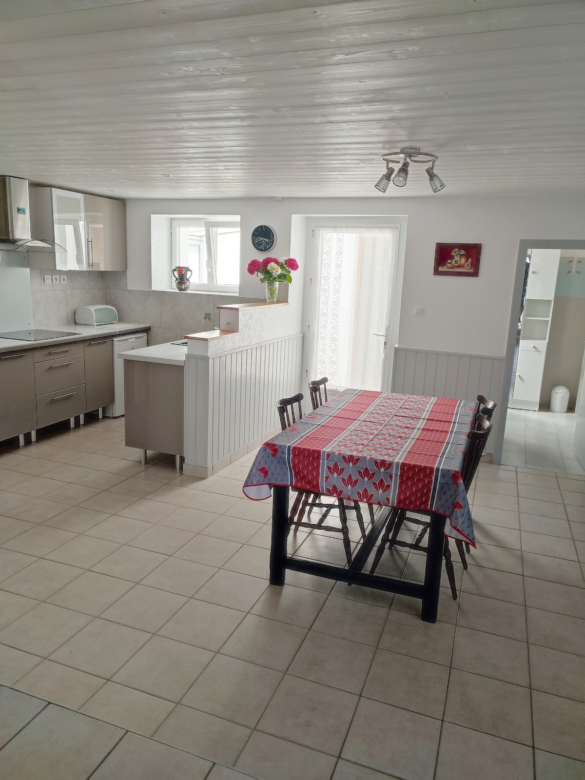 150 m2 duge, pažljivo renovirane i uređene, sa 4 spavaće sobe, 3 kupatila, kao i 3 toaleta 9 kreveta (3 dvokrevetne spavaće sobe i spavaonica sa tri mala kreveta) Kuća je okružena dva velika vrta, a dnevna soba s pogledom na vinograd Nantais Mirno i tiho mjesto. Prisustvo hidromasažne kade (6 ljudi) donosi plivanje