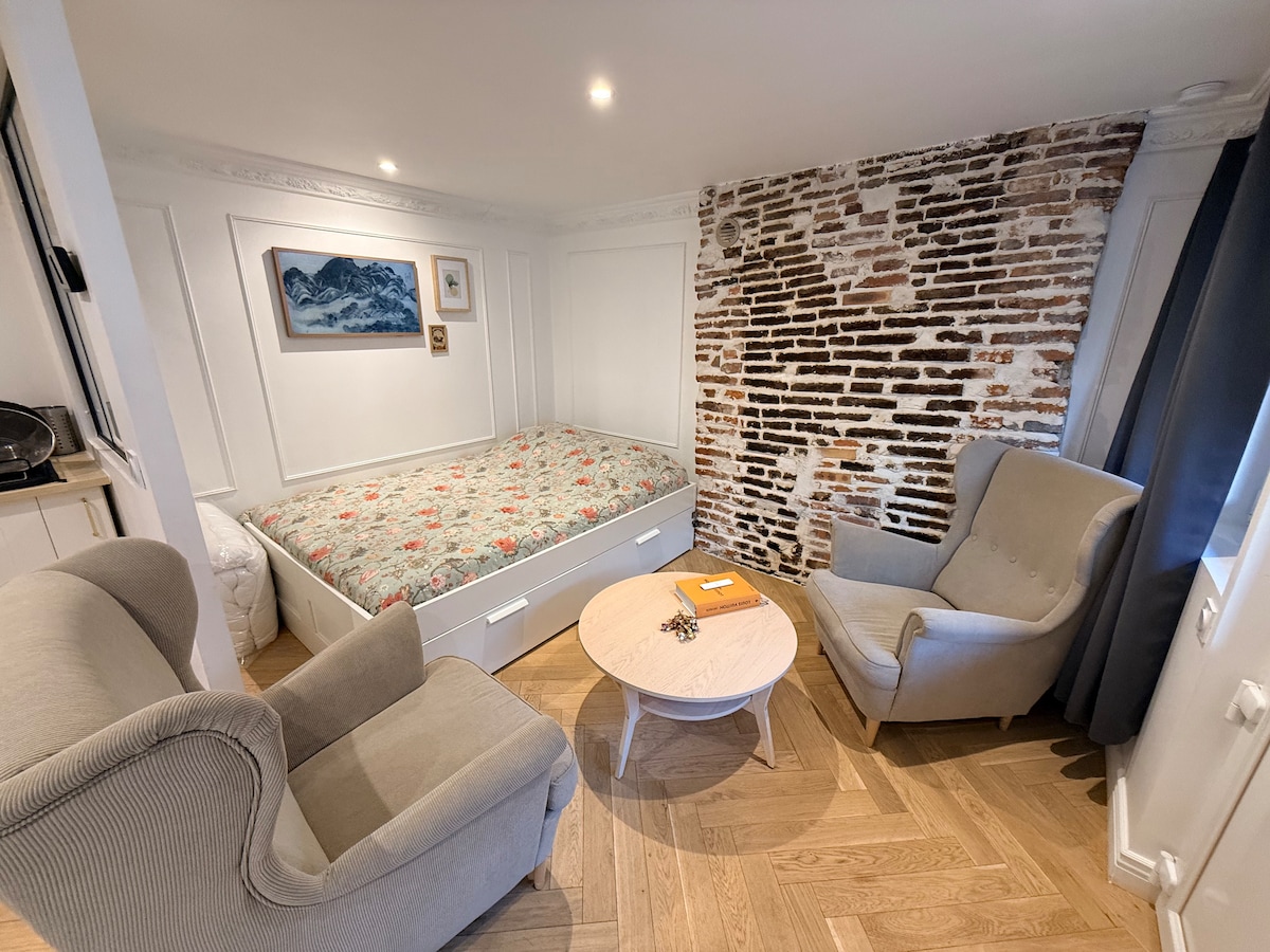 Prekrasan stan sa 1 spavaćom sobom koji se nalazi na 2. spratu zgrade iz 19. veka sa pogledom na unutrašnje dvorište. Tačno u istorijskom centru Dolea sa parkingom udaljenim 2 minuta hoda, u urednom stilu, savršeno kombinuje estetiku i praktičnu stranu. Potpuno pogodno za turističke i profesionalne boravke. Sastoji se od opremljene kuhinje, dnevnog boravka sa krevetom na rasklapanje, kupatila, WC šolje i balkona Nekoliko koraka dalje, restorani, čajana, vešernica, prodavnice namirnica itd... Železnička stanica je udaljena 10 minuta.