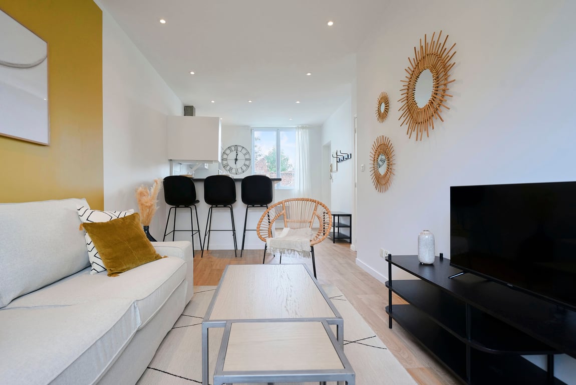✔️ Uživajte u sigurnom smještaju s liftom, baštom i privatnim parkingom u mirnoj stambenoj četvrti. ✔️ Samo 5 minuta hoda od tramvajske i biciklističke stanice „Buisson”, stignite do Lila za 8 minuta dok uživate u mirnim noćima u Marcq-en-Baroeul. ✔️ Idealno se nalazi sa svim osnovnim prodavnicama do kojih se može doći pješice: pekarom, supermarketom, apotekom, restoranom i prodavnicom duvana.