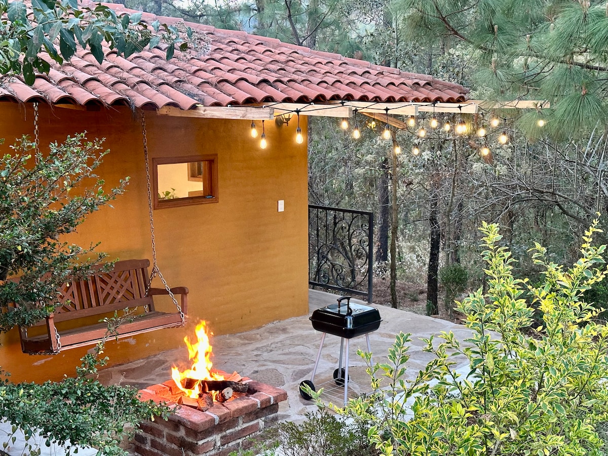 Uživajte u ovoj prelepoj luksuznoj brvnari za parove, smeštenoj usred šume u našem prelepom čarobnom gradiću Mazamitli. Opustite se u toploj kupki u đakuziju dok uživate u prelepom pogledu na šumu. Počastite se ukusnom besplatnom kafom dok se opuštate u svojoj visećoj ležaljci na otvorenom. Nalazi se na samo 10 minuta od centra Mazamitla. Želimo da vam boravak bude nezaboravan!