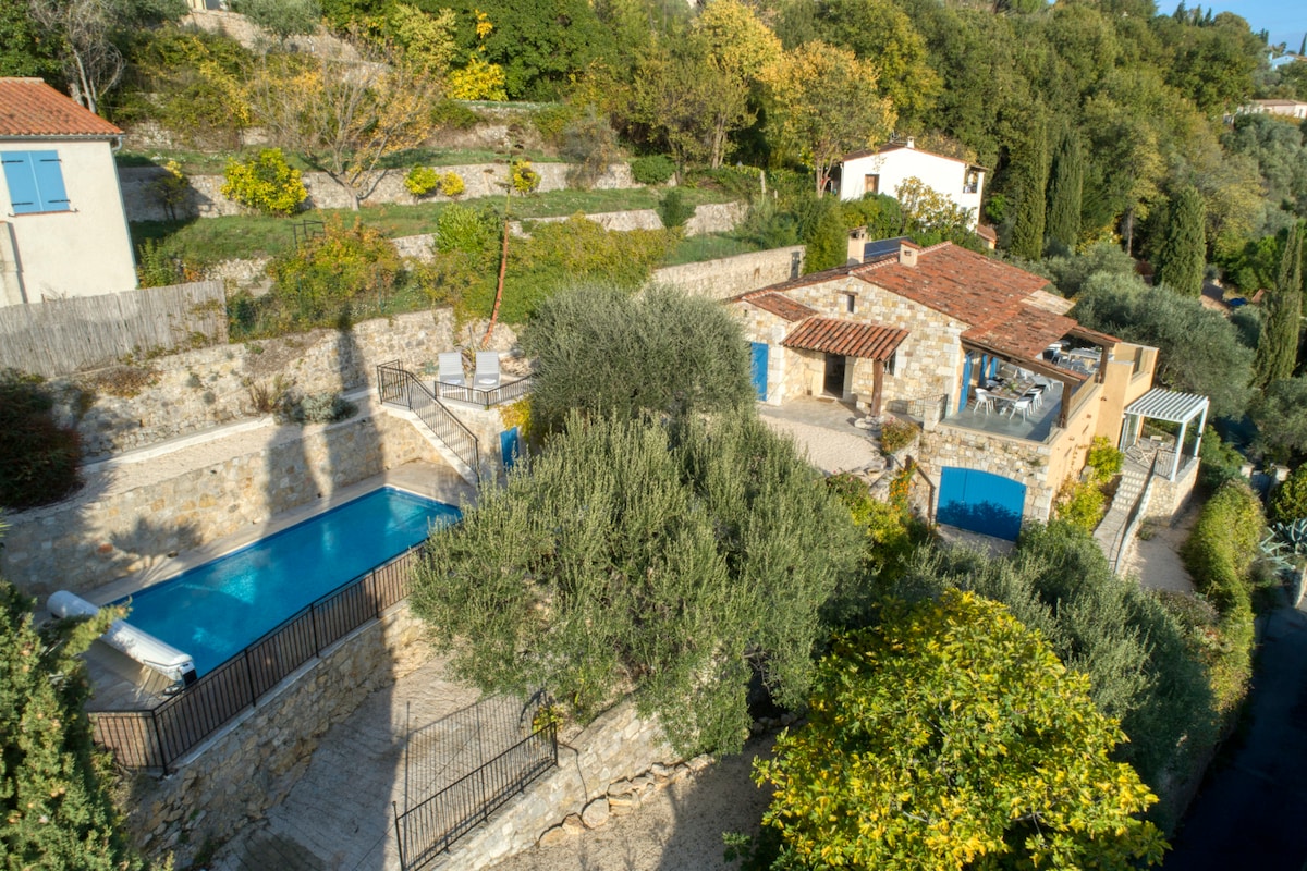 Petit STUDIO très bien équipée avec entrée et parking privé dans une grande Propriété avec piscine et jacuzzi chauffés du 10 avril au 30 octobre . La piscine extérieur et jacuzzi ainsi que le jardin sont partagés mais assez grand pour profiter chacun son espace de tranquillité . Je vis dans la bastide principale . Un Havre de Paix entouré d oliviers centenaires . A 35 minutes de l aéroport de Nice et divers villages provençaux et 14km de Cannes . Tele grand écran /abonnement Netflix