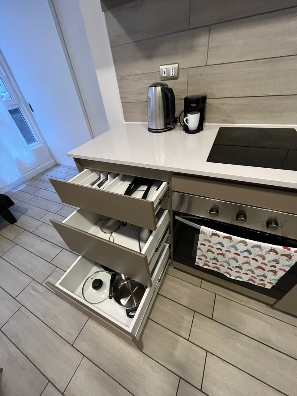 Prostran i centralno smešten sa klima uređajem, bračnim krevetom i kuhinjom.