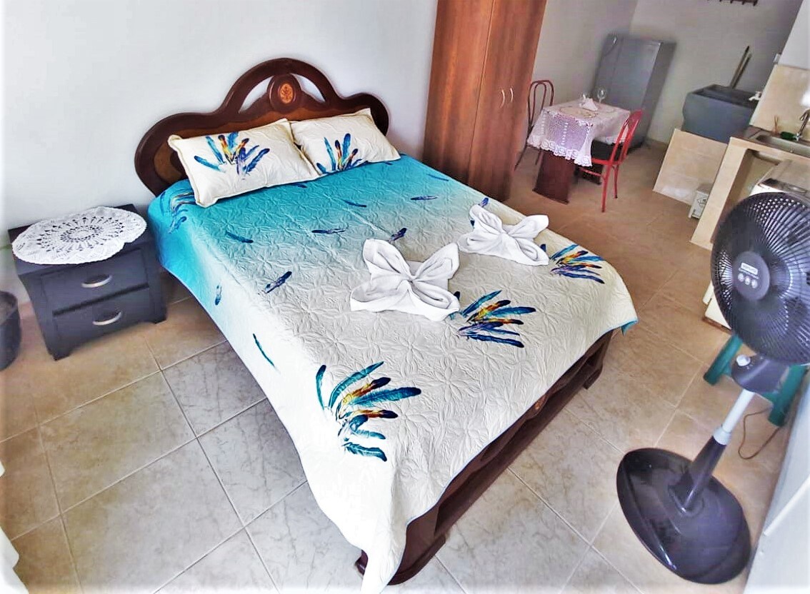 Lugar de descanso apto para dos personas, bien equipado, ideal para estancias largas. !!Ya cuenta con Aire Acondicionado!! Totalmente privado, todo en 1 solo espacio acogedor, con puerta directamente a la calle, fácil acceso. Cuenta Cocina, lavadero, Wifi, nevera, comedor, baño, suministro de agua las 24 horas (Reserva de 2.000L), en fin, lo necesario para una estancia placentera. Nota: Parqueadero gratuito!!