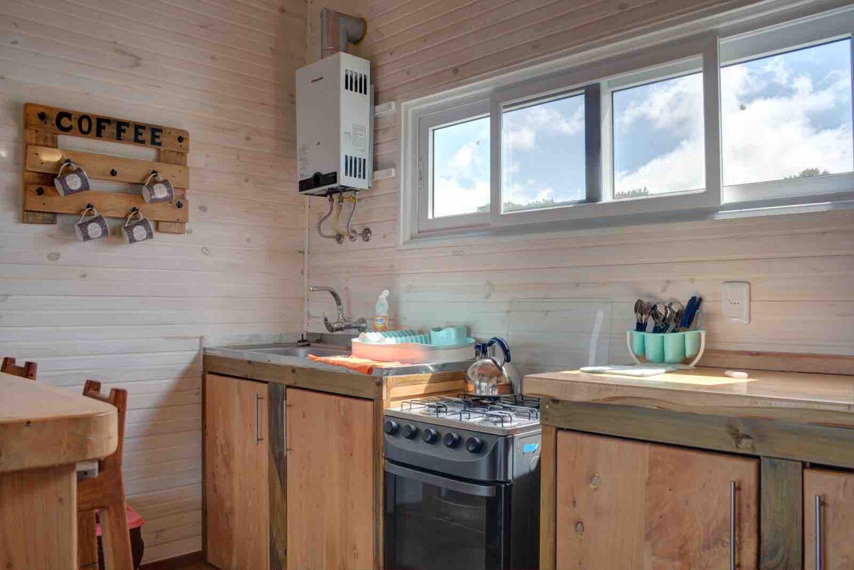Potpuno opremljena kuhinja; mikrotalasna pećnica, frižider-zamrzivač, kuhinja sa rernom, topla voda, dobro osvetljenje, veoma moderno. Dnevna soba sa foteljom, radiom, 40-inčnim pametnim TV-om, klima-uređajem Spoljašnja terasa, suncobran od 3 metra, sto, stolice, roštilj na drva ili ugalj Drvena terasa sa krovom oko celog objekta, za prijatniji boravak. Glavna spavaća soba sa somijerom, kupatilo u sklopu sobe. Kupatilo ukrašeno prirodnim kamenom, umivaonik i fiksni stakleni paravan, dodaci u odnosu na bezbednost i udobnost