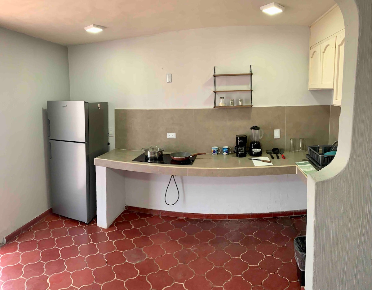 Super! Elegante estudio departamento equipado y nuevo, entrada independiente con estacionamiento privado. Muy bonitos acabados y muy acogedor. A solo 1 cuadra de supermercados y plaza comercial a 8 minutos del área turística del malecón muy bien ubicado y seguro. El departamento es muy espacioso y cuenta con Tv, internet de alta velocidad, cocina equipada, aire acondicionado, una cama king Size, baño completo y un medio baño. contamos con acceso a la terraza el jardin es área para fumadores.