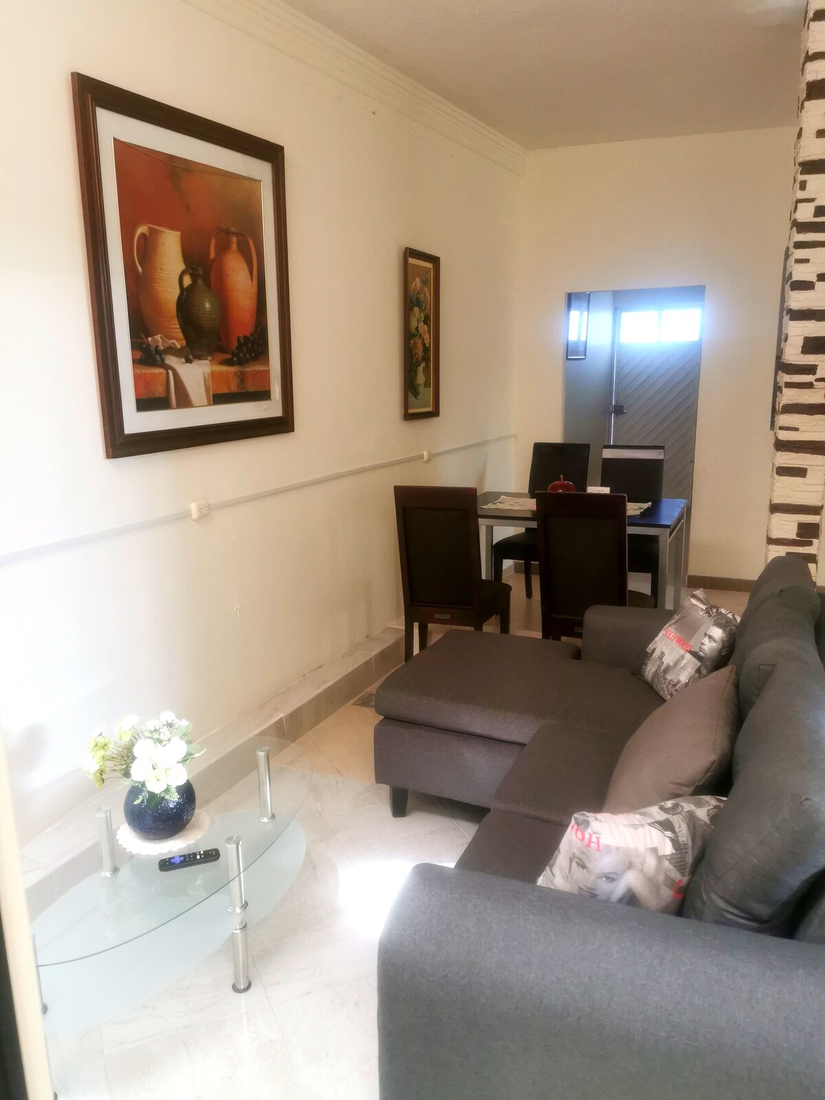 Diviértete con toda la familia en este alojamiento con estilo Este hermoso departamento de tres dormitorios se encuentra en una de las vías transitadas y de fácil acceso a la ciudad. Cuenta con una amplia sala de estar, un baño completo y un medio baño en el área social, un comedor y una cocina totalmente equipada Este departamento se encuentra en una segunda planta por lo que hay que tomar en cuenta que se requiere subir escalones. Disfruta y mantente conectado con Wifi, Netflix y TV por cable