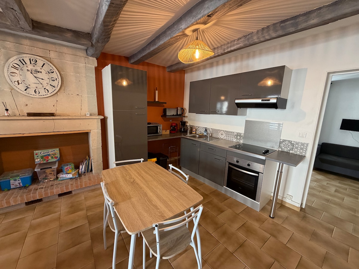 U šarmantnom imanju (stara renovirana seoska kuća) na 3ha, u prirodi i tišini u podnožju. Iznajmljivanje za odmor od 60 m2 koje se sastoji od: - Prizemlje: opremljena kuhinja/trpezarija (električni šporet, frižider, mašina za pranje veša, mini rerna, aparat za kafu...). - Sprat: jedna spavaća soba (bračni krevet + krevet za jednu osobu + dnevni boravak, TV). Kupatilo (tuš + kada), toalet. Wi-Fi. Bašta, terasa, baštenski nameštaj + roštilj.