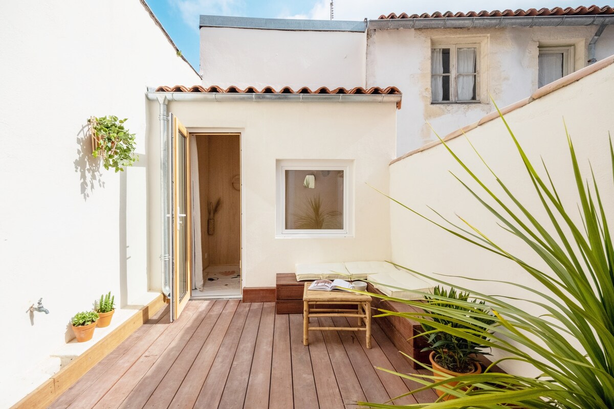Iznajmljujem stan koji se nalazi u srcu centra La Rošela, 30-ih godina hoda od stare luke. Sastoji se od spavaće sobe sa otvorenim kupatilom, mirne u dvorištu, potpuno opremljene kuhinje otvorene prema prekrasnom dnevnom boravku visine plafona, okupane svjetlom starim kamenim zidom.