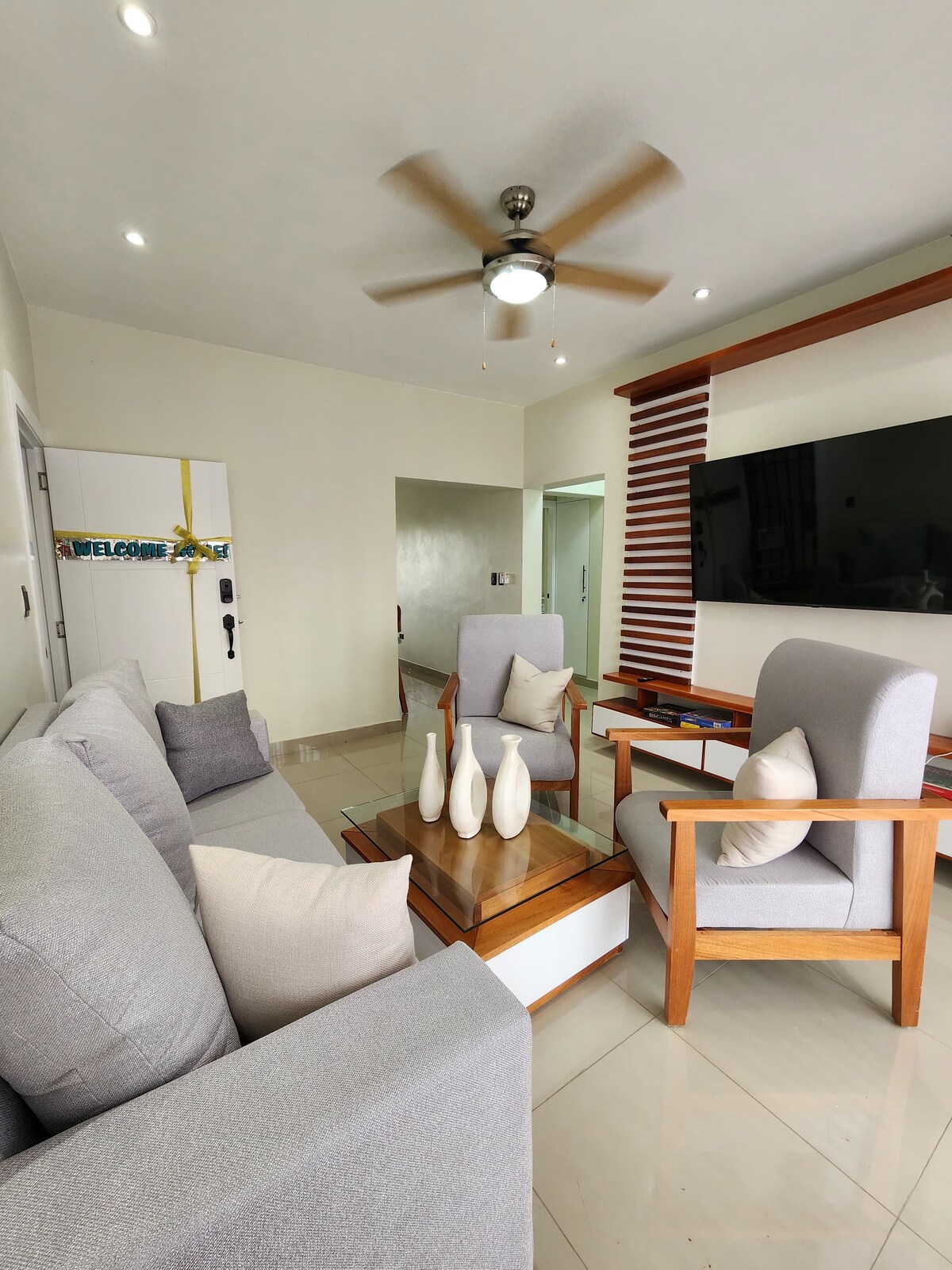 Dobro došli u naš udobni Airbnb u kondominijumu Palmares u Kaleti, La Romana! Ovaj moderni stan, koji se nalazi u kondominijumu otvoren 2023. godine, nudi 3 spavaće sobe, 2 kupatila i prostor za udoban smještaj do 6 osoba. Uživajte u blizini prelijepih kristalno čistih plaža, lokalnih supermarketa u kojima se možete opskrbiti, raznim obližnjim zabavnim sadržajima i širokom izboru restorana koji će oduševiti vaše nepce.