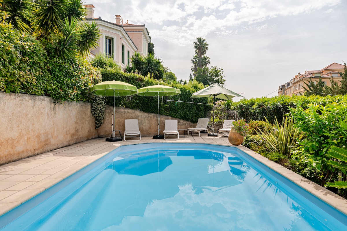 Luxury accommodation in the heart of a historic perfumer's mansion, 5 minutes walk from the centre of Grasse. Enjoy breathtaking Mediterranean views, the tranquility of a gorgeous private pool situated in a beautiful and fragrant flower garden, beautifully appointed and comfortable bedrooms, AC throughout the entire space, modern 5-star amenities, fabulous indoor and outdoor living spaces, private parking. Rent just one room or the entire apartment. Sleeps 2-8
