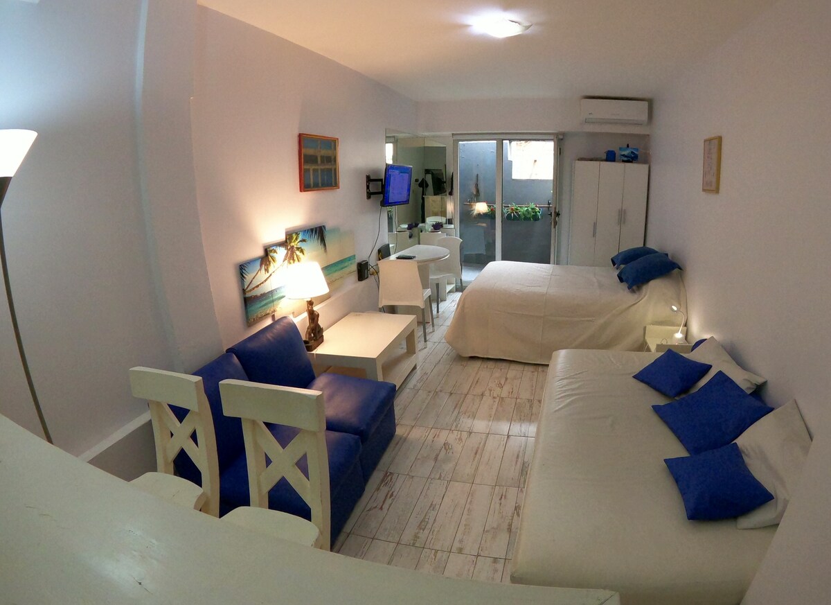 Прекрасан потпуно нов студио који се налази у насељу Палермо.Стан има све погодности за уживање у одличном боравку у Буенос Аиресу.Wi-Fi , kablovska televizija od 50 inča, bračni krevet, potpuno opremljena kuhinja (električna rerna, mikrotalasna rerna, toster, kuvalo za vodu itd.). Stan se nalazi na 6. spratu koji vam omogućava da imate svetlo tokom dana.