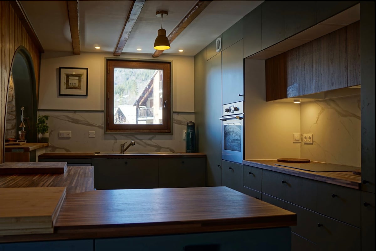 Šarmantno alpsko utočište za 8 gostiju. Uživajte u našem prostranom, lijepo renoviranom domu (sa baštom i balkonom) u francuskim Alpama! Sa 4 udobne spavaće sobe sa dvostrukim krevetima sa oprugama, veliki dnevni boravak sa kaminom i zasebnu, potpuno opremljenu kuhinju. Samo 5 minuta od ski lifta, to je takođe savršena baza za ljetnje planinarenje i vožnju biciklom. Opustite se u modernom kupatilu, odložite skije u namjensko skladište i uživajte u Sonos sistemu i igrama.