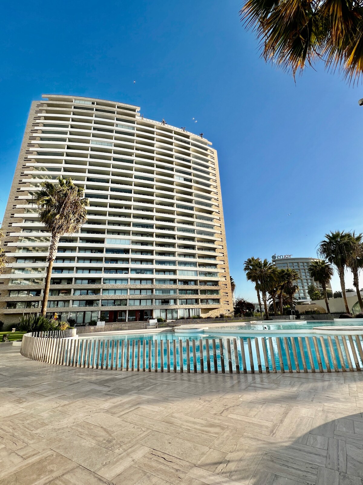 Pobjegnite pored mora sa svojom porodicom. U bilo koje doba godine, osjećajte se kao kod kuće. Zalasci sunca sa terase, gdje možete da vidite sav zaliv Kočimbo i serenu. U večernjim satima vedro i zvjezdano nebo, udišući morski vazduh. Sve je to okrenuto prema moru, 19. sprat, za 5 osoba. Pored kazina Enjoy, otvoreni bazen i beskonačni pogled. Kinčosi sa panoramskim pogledom. Besplatan parking. Napuštanje kondominijuma na obali