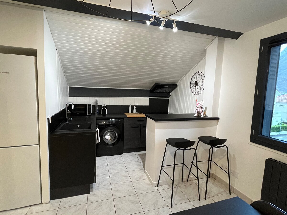 Appartement T3 rénové de 70 m2 tout équipé, sur St Egreve à 10min de Grenoble en voiture et 15min en tram. Idéal pour déplacement professionnel, proche du pôle scientifique. Fibre avec espace travail au calme. composé d’une salle à manger/cuisine tout équipé, 1ère grande chambre avec lit double et bureau, 2eme chambre avec 2 lits simple et salon, SDB avec douche et wc. Autoroute à 2min, tramway à 5min (direction Grenoble) A proximité des gares et stations de skis.
