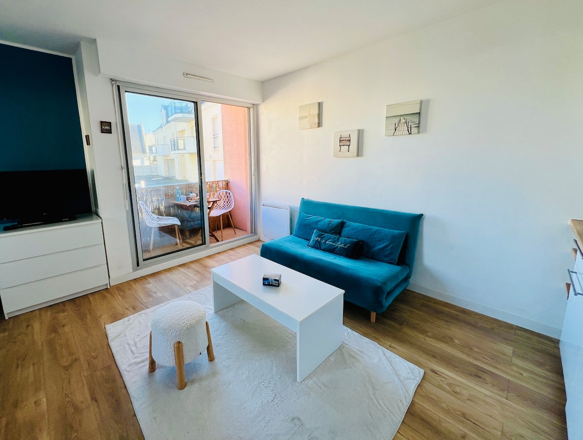 Dvosoban stan od 33 m2 u prizemlju malog, veoma tihog stana. Terasa okrenuta prema jugozapadu. Velika plaža Bretons je na korak odavde, kao i sve prodavnice. Odvojena spavaća soba sa kvalitetnom posteljinom u 160. Kliknite i kliknite u salonu. Opremljena kuhinja: staklokeramička ploča, veliki frižider-zamrzivač, mašina za sudove, mašina za veš i sva potrebna oprema za vaš boravak. Kupatilo sa toaletom. Dostupno ako je potrebno: krevetac za bebe, kada za bebe, stolica za hranjenje