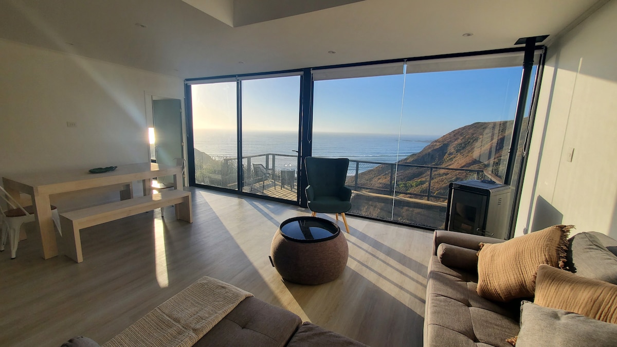Uživajte u zvezdama i pogledu na okean sa panoramskog prozora spavaće sobe ✨ Naša dvospratna brvnara u srcu Matansasa nalazi se na samo nekoliko koraka od plaže, šetališta uz obalu i vrhunskih restorana. Ima prostranu terasu sa pogledom na okean, roštilj i spoljašnje prostore za opuštanje. Privatni parking je uključen. Pristup se deli sa drugom jedinicom u sklopu objekta.