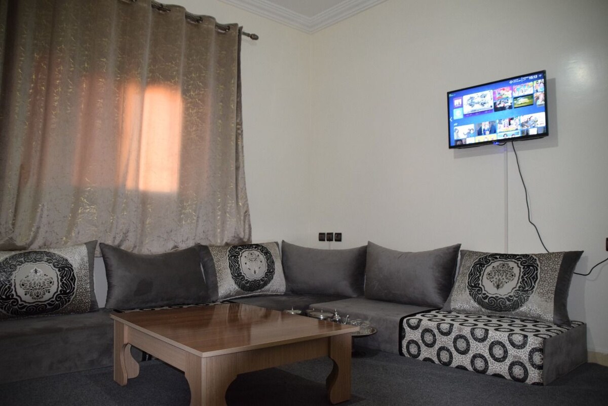 •Bienvenue dans cet appartement moderne et confortable à Laâyoune. 2 chambres, salon cosy, salon marocain, cuisine équipée, 2 salles de bain — idéal pour un séjour agréable.