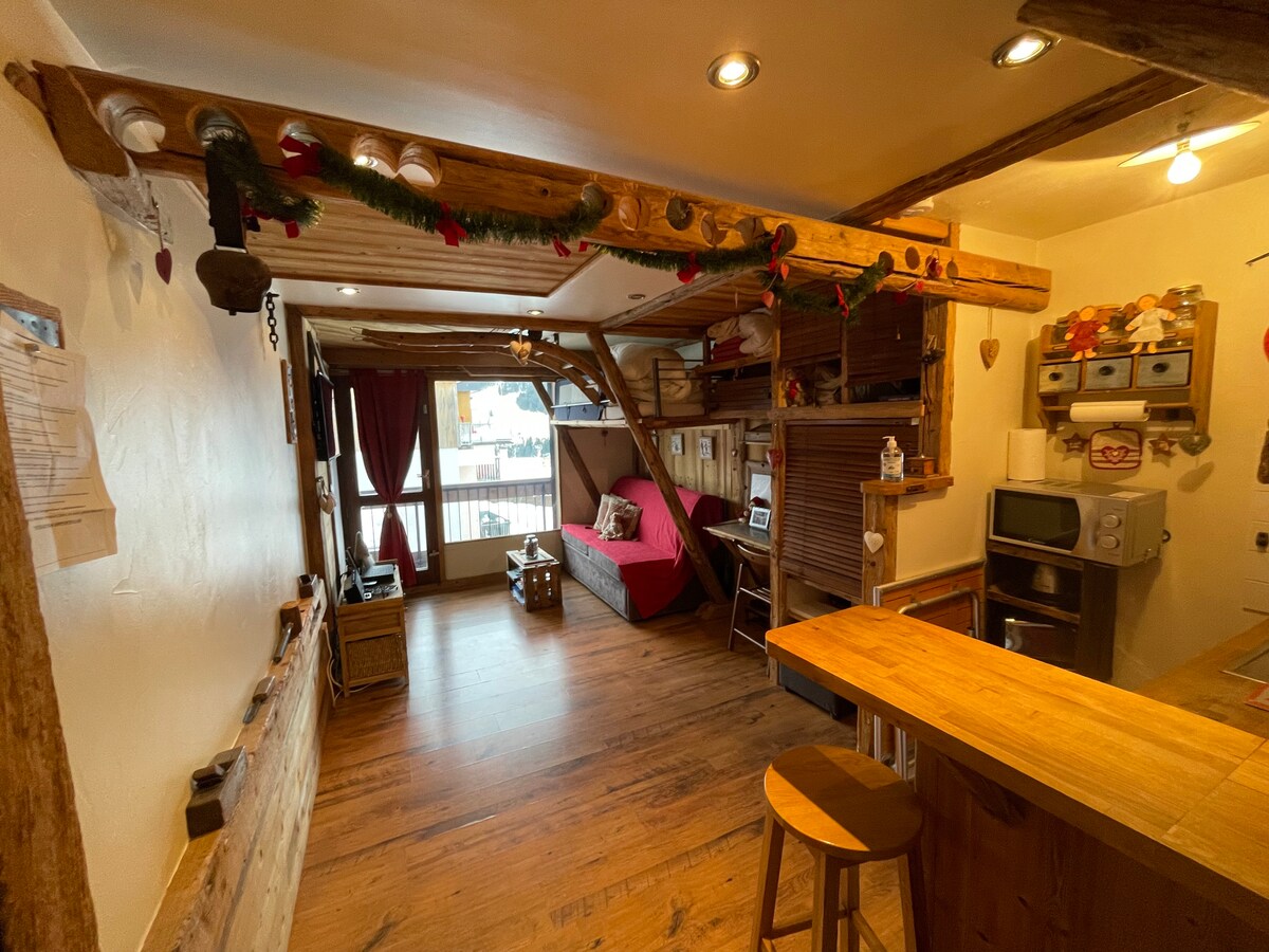Un studio en plein centre de la station avec une ambiance chalet. Cosi et chaleureux, vous y passerez un séjour inoubliable. Il est situé en plein centre mais au calme et proche du départ des pistes. Attention non équipé PMR