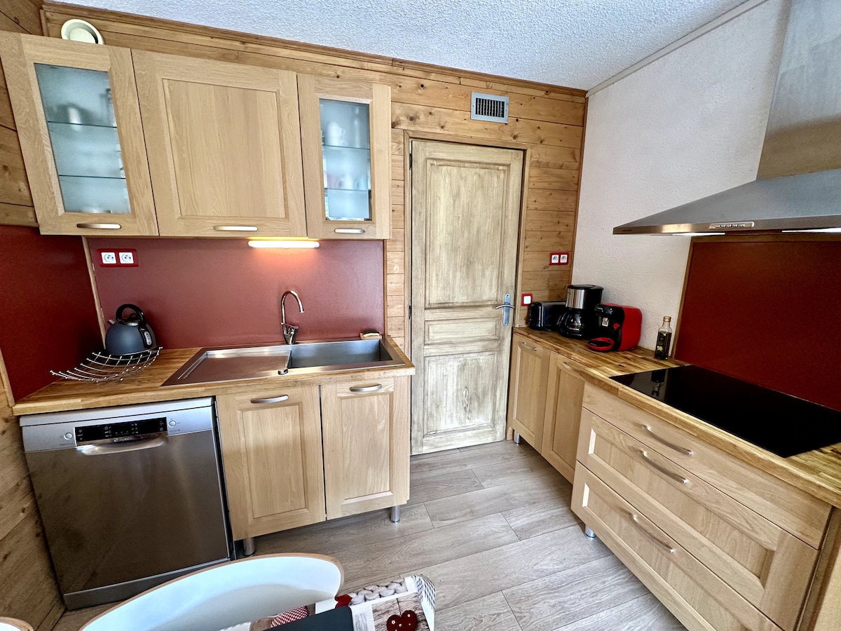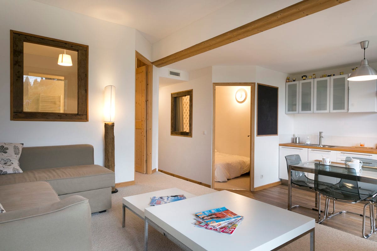 Potpuno topao, moderno renoviran studio apartman sa pogledom na crvenu iglu, okrenut prema jugu, zagarantovan suncem Imate svu udobnost. Garsonjera od 29 m2 može da primi 4 gosta. Računa se mezanin, bračni krevet u planinskom uglu, kauč u dnevnoj sobi. Imate kupatilo koje je dizajnirala Šarlot PERIAND sa kadom. Uz skijašku stazu - prodavnice udaljene 200 metara Stanica za parkiranje i prevoz autobusom u podnožju rezidencije