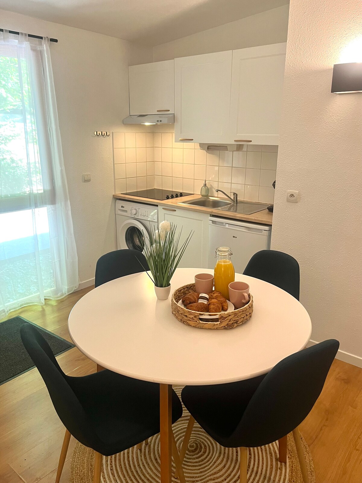 Apartman od 60 m2 sa direktnim pristupom Za 1 ili 2 osobe i bebu Dvokrevetna spavaća soba s TV-om Dnevni boravak sa TV-om Čajna kuhinja i trpezarija (frižider, rerna, mikrotalasna pećnica, indukciona ploča, posuđe itd.) Kupatilo (tuš i kada) Zaseban toalet Prostor za opuštanje (dokumentacija, društvene igre itd.) Privatna terasa Blizu Euro Vélo 3, smeštaj sa oznakom „Accueil Vélo“ od 2024. Početak pešačkih staza i staza za planinski biciklizam u podnožju kuće.