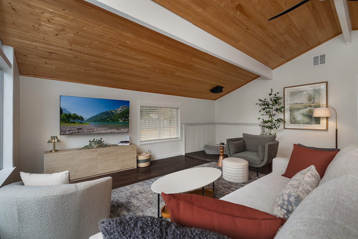 Ova gostinjska kuća odlikuje se lokalnom umjetnošću i ekološki osviještenim detaljima. Pored stila, uživaćete u prirodnom svetlu, privatnosti, udobnosti i odličnoj lokaciji u blizini planinarskih, trkačkih i biciklističkih staza, državnog Kapitola i centra Olimpije. Kauč na razvlačenje od Joybird-a ima iznenađujuće udoban dušek od memorijske pjene, a mi smo sretni što se možemo iskupiti za one koji više vole da se druže na prvom spratu ili ne mogu da se popnu na potkrovlje.