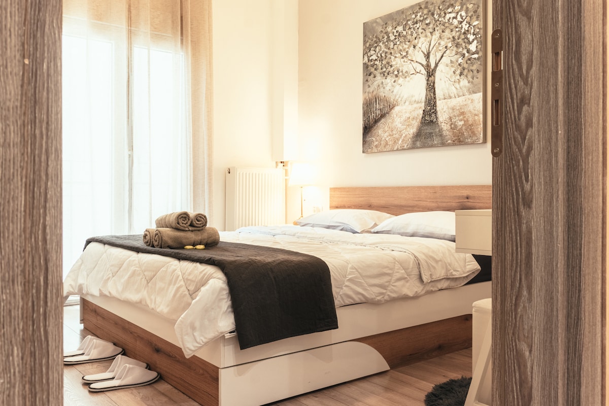 Welcome to our newly renovated 40 sqm apartment in the heart of Thessaloniki! Located just 80 meters (a 1-minute walk) from Agias Sofias Metro Station, this quiet first-floor retreat offers both convenience and tranquility.Fully equipped with modern amenities, including a complete kitchen and a washer-dryer, it provides all the comforts of home.Explore the historic city center with ease.Perfect for those seeking comfort, convenience, and a touch of history.