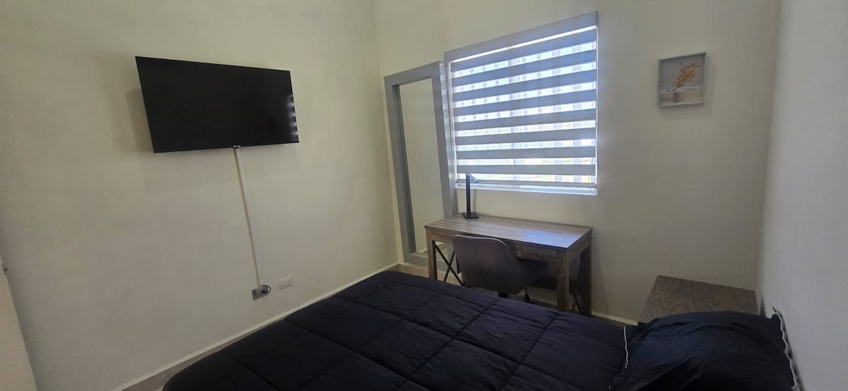 Uživajte u jednostavnosti ovog mirnog, kompletnog i centralno smještenog smještaja na 2. spratu. Nalazi se 15 minuta od centra Apodake, 20 metara od centra San Nikolasa, 20 metara od aerodroma Escobedo, 30m Airport International i 20m Aeropuerto del Norte. Ima 1 bračni krevet Ortopedica, 1 bračni krevet, kauč na razvlačenje, trpezariju, kompletnu kuhinju, radni sto, TV 50" sa aplikacijom za strimovanje kao što su Prime, Disney, Star+, HBO Max itd. Alexa zvučnik Perionica veša u roku od 5 minuta Prostor ispred parkinga