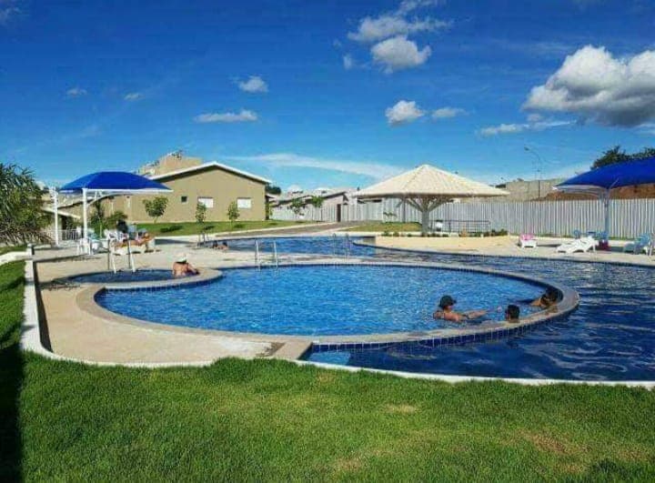 Kao ograđeni stambeni kondominijum, omogućava vam da uživate u miru, sa porodicom ili grupom prijatelja, uživajući u trenutku odmora. Sobe sa centralnim vazduhom. Locomovendo automobilom, kuća se nalazi: * 5 minuta od Clube Lagoa Quente; * 11 minuta od centra: Clube Di Roma, Clube CTC, Supermercado Bretas i Apoteke, prodavnice uopšte; * 30 minuta vrućim parkom u Rio Quenteu * 10 min. Supermarket Acai Acai i od dana do dana Minute se računaju nakon GPS-a, od ovog mjesta