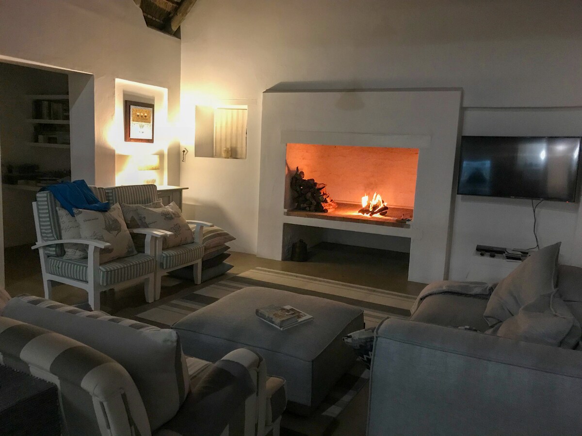 Uživajte u neprekidnom pogledu na okean iz ove šarmantne seoske kuće na solarni pogon sa brzom Wi-Fi mrežom. • Prostrano dvorište sa potpuno novim salonom • 3 spavaće sobe sa zasebnom kupaonicom - 2 sa zadivljujućim pogledom na okean i umirujućim zvukom talasa • Udoban kamin, Smart TV (DSTV) i Wi-Fi • Potpuno opremljena kuhinja, mašina za pranje sudova, mašina za pranje i sušenje veša • Zatvoreni braai prostor • Samo 3 minuta hoda do plaže i morskih kamenih bazena.