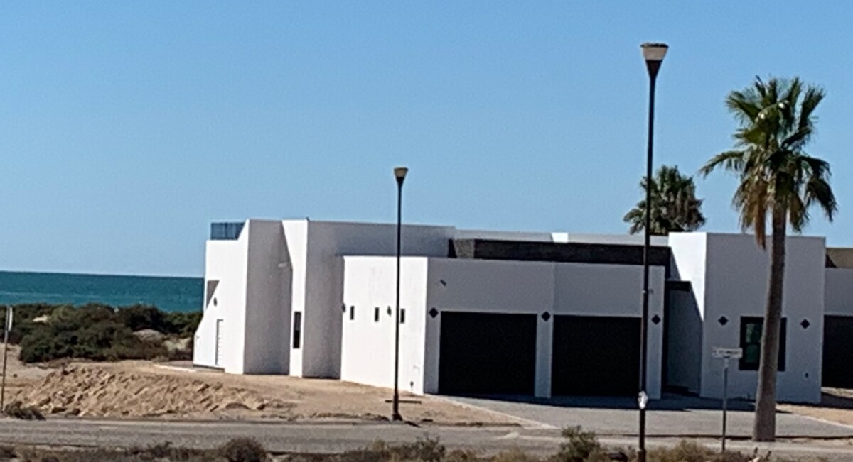 Beautiful beachfront villa on the Sea of Cortez with fast internet service! Centrally located on Playa Mirador, this 3 bedroom 3 bath home is within a short walking distance of Manny's Beach Club, Pitaya Bar and Pink Cadillac. Spend the day on the beach, then unwind and watch the sunset from the large patio with lounge chairs, firepit and BBQ grill. The home is perfect for entertaining with a shuffleboard and foosball tables, two 50" smart TV's and a fully stocked kitchen.