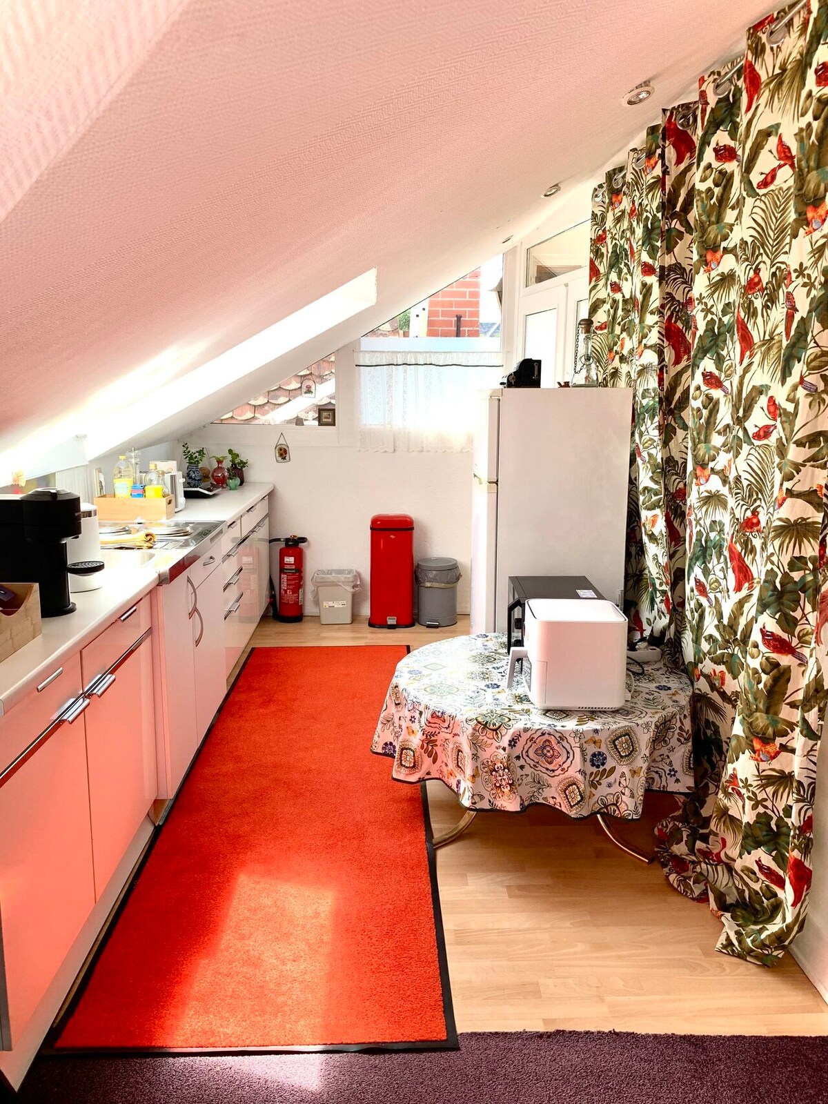 Prelijepo, novo, renovirano potkrovlje nije na ulici, u tišini na selu sa parkingom. Potkrovlje je ukusno i udobno namješteno. Ljeti je ovdje ugodno cool. Ovdje se možete opustiti u potkrovlju uz jogu, slikanje, čitanje, igru, TV ili u bašti ispod drveća na ležaljci. Kreveti su namješteni, a peškiri za kupanje spremni. Kafa i organski čajevi su besplatni tokom vašeg boravka. Po dolasku će vas dočekati 1 boca vode, čokolade i slatkiša.