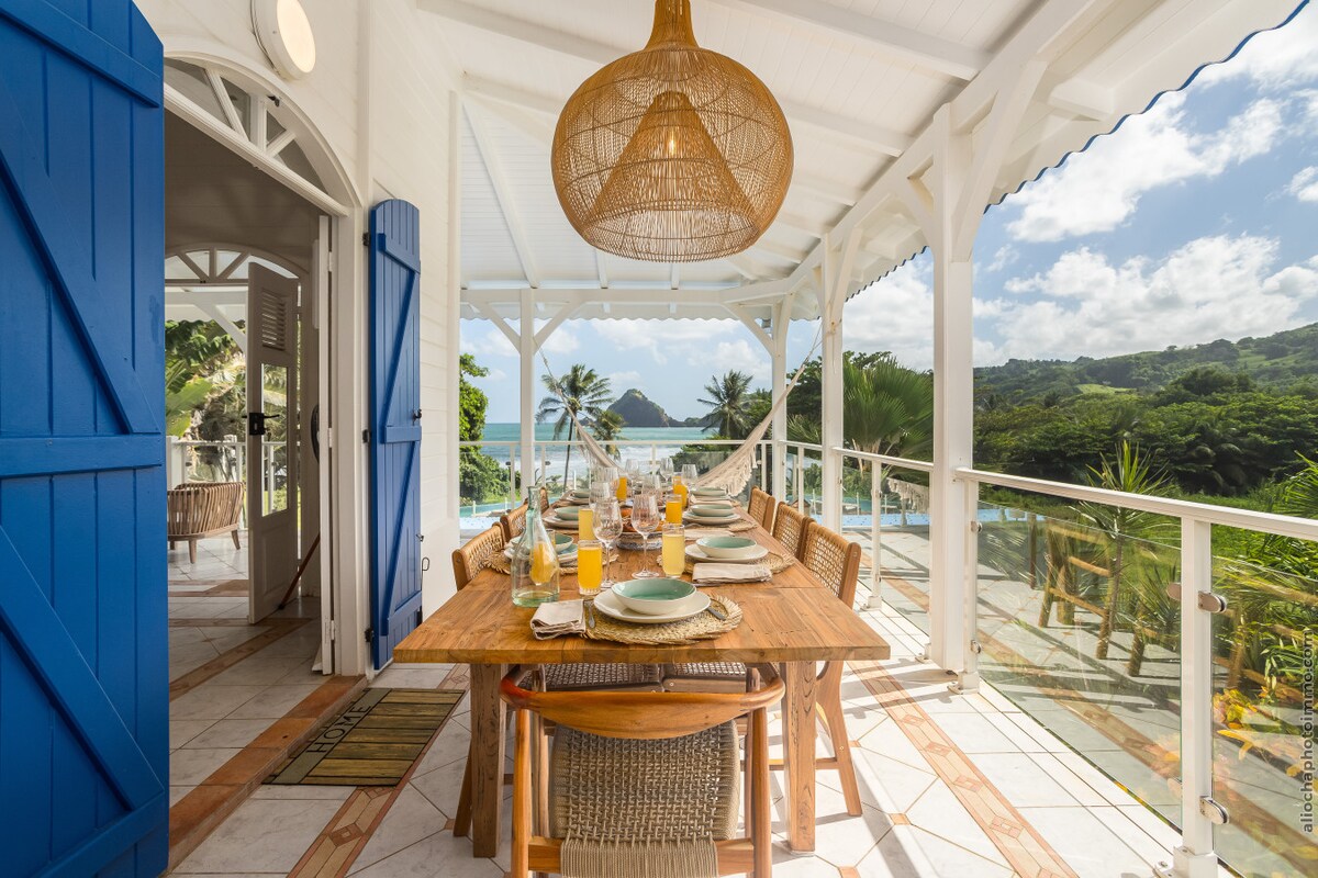 Bienvenue dans notre maison d'Art donnant sur la plage de la baie de Saint-Pierre, au pied de la Montagne Pelée. Reconstruite après l'éruption de 1902, elle allie charme historique et confort moderne, classée 4*. Le matin, profitez d’une baignade grâce à son accès direct à la plage. En soirée, profitez de la terrasse à l'étage et de sa vue imprenable sur la mer des Caraïbes et ses couchers de soleil inégalés. Venez vivre une expérience authentique dans cette ville d'Art et d'Histoire.
