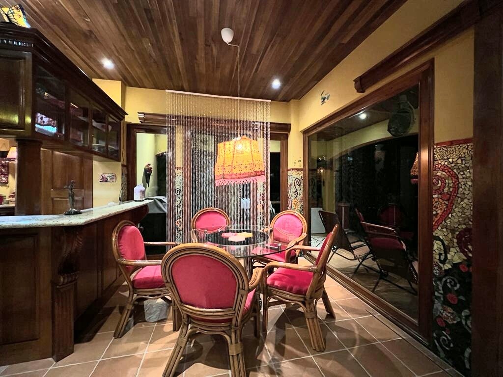 Unusually open resort style beautiful Villa on over 3 1/2 acres overlooking Lake Arenal . Surrounded by rain forest and pastures. 4 bedrooms. 4 full 2h bathrooms w/bidet shower heads. 2 bdrms with att. bathrooms. A large room with a loft. A small room w double bed. Swimming pool / solar heated hot tub. Accommodates 10 adults plus 2 children. A place for yoga, meditation healing and peaceful relaxation. There is a central courtyard with propane fire place. Parties are allowed before 9 pm