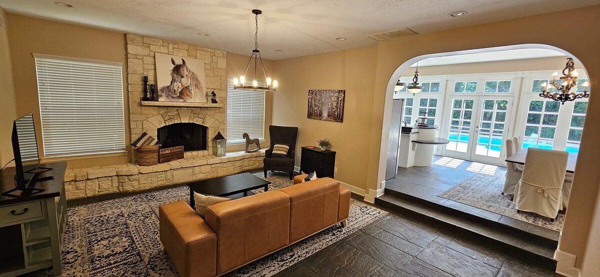 Teksaški brdski kamen susreće se s modernom francuskom seoskom kućom u ovom privatnom luksuznom utočištu na 5 šumovitih hektara u Montgomeriju u Teksasu. Ovaj skriveni dragulj ima dosta prostora za vašu grupu i nalazi se u blizini jezera Konroe! Topao i privlačan kamin u dnevnoj sobi otvara se ka prelepoj kuhinji i trpezariji, sa pogledom na privatni bazen sa bujnim šumarkom drveća za pozadinu. Savršen prostor za vaš odmor ili mali događaj. Nalazi se u blizini svega, uključujući Magnoliju i The Woodlands.