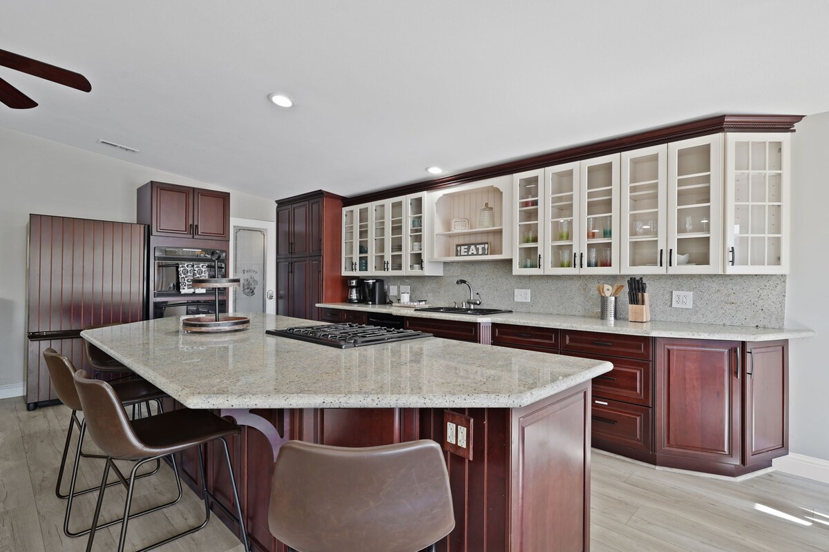 Pobjegnite u naše udobno utočište s pogledom na jezero sa zadivljujućim pogledom na Clearlake i Mt. Konokti. Uživajte u udobnosti od 2400 kvadratnih metara sa 3 spavaće sobe, 3,5 kupatila, prostranim dnevnim boravkom sa TV-om od 70"i igraonicom sa ping-pongom i bazenom. Opustite se na velikoj terasi, pijuckajte vino u zalazak sunca ili kuvajte u potpuno opremljenoj kuhinji. Ostanite hladni uz klima-uređaj i toplo uz grijanje. Dovoljno parkinga, uključujući 2 mjesta za brod. Zabava u blizini: čekaju vas ribolov, vožnja kajakom, planinarenje i degustacija vina!