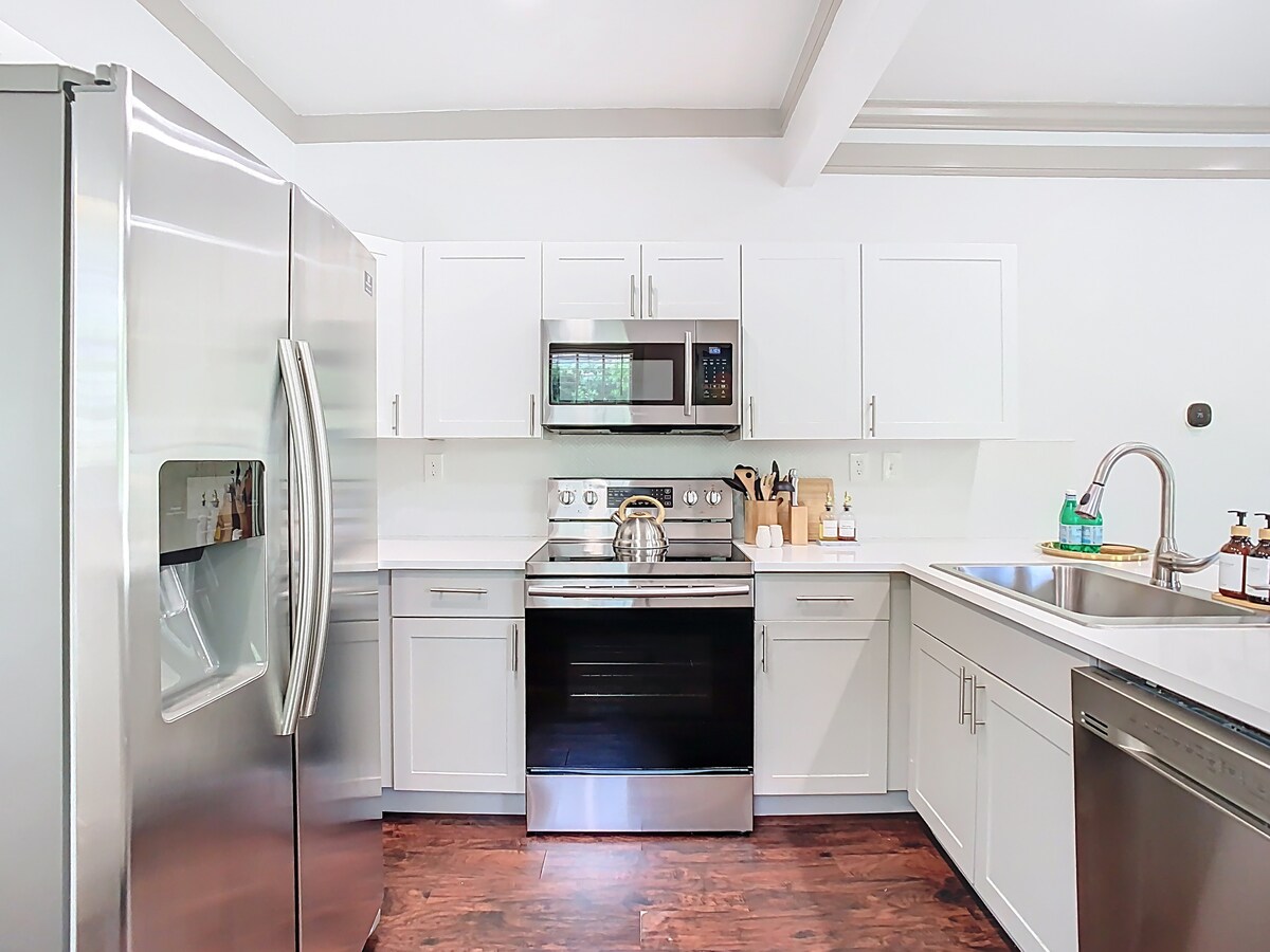 Ovaj prostor za opuštanje sa 1 krevetom i 1 kupatilom u centru Orlanda može se pohvaliti bujnim ograđenim privatnim dvorištem, hidromasažnom kadom i potpuno opremljenom kuhinjom. Ponosni smo na naš studio na udobnost, velnes i delikatnu pažnju posvećenu detaljima kako bismo doživjeli čaroliju modernog prostora u srcu Orlanda. Uživajte u potpuno novom preuređenju, namještaju i kućanskim aparatima. Ovo je zadnja jedinica objekta sa 2 jedinice. Uključujemo: ✅50" TV ✅Luksuzni dušek ✅Optički Wi-Fi Kafa i čaj✅ bez kofeina ✅Disney Plus, Hulu, Max, Netflix ✅ Besplatan parking
