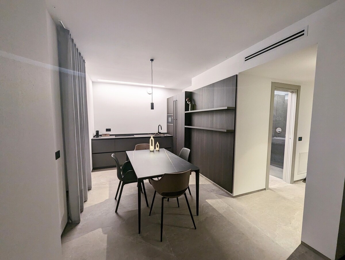 Suite Italia, odavanje počast vječnoj arhitekturi, sjećanje na Palacu della Civiltà Italiana u Rimu, gdje svaki detalj priča priče o veličanstvu i veličanstvu. Fini materijali, prefinjeni namještaj i mekana svjetla stvaraju sofisticiranu atmosferu, kombinujući udobnost i stil. Savršeno za parove koji traže romantičan odmor, poslovna putovanja ili porodice, to je luksuzno utočište gdje se opuštanje i dobrobit spajaju u nezaboravan doživljaj.